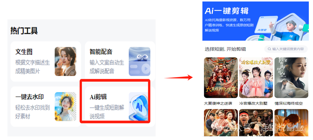 第一步:点开【AI剪辑】后,可以选择自己喜欢的短剧。