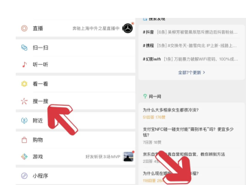 1.首先,在微信页面中点击“搜一搜”,然后下滑选择“前往问一问”。