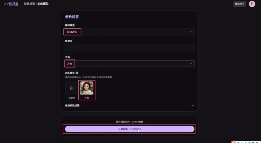 上传之后,点击【开始训练】