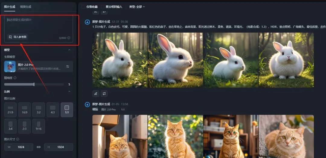 第三步,将保存好的图片上传至即梦AI,直接生成视频。