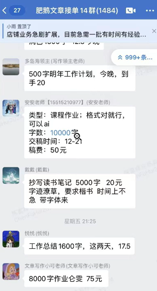 代写行业存在多年,市场需求庞大,像大小公司的文案、大学生的论文等都有代写需求。