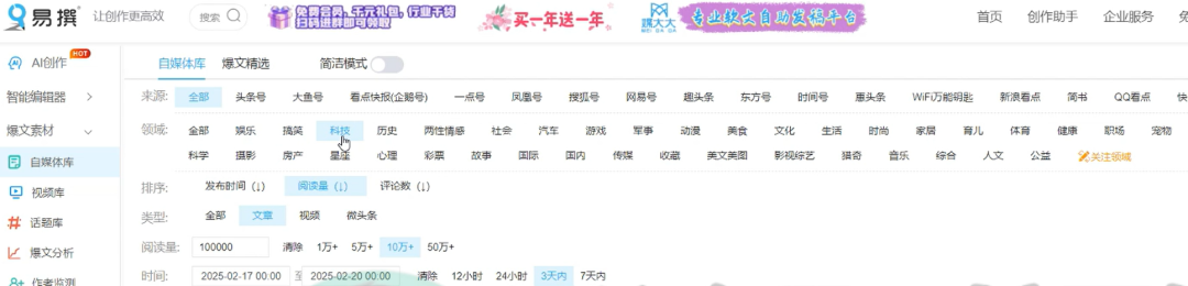 2.实操步骤:首先选择要改写的文章,可在易撰(前3天有免费会员,之后收费)这样的文章库找,也可关注其他公众号或头条的爆款文章。