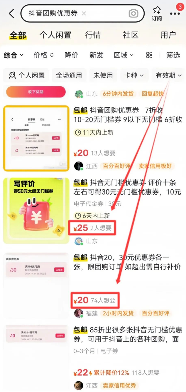例如在闲鱼平台折价出售优惠券,以更优惠的价格转让,市场需求通常良好。