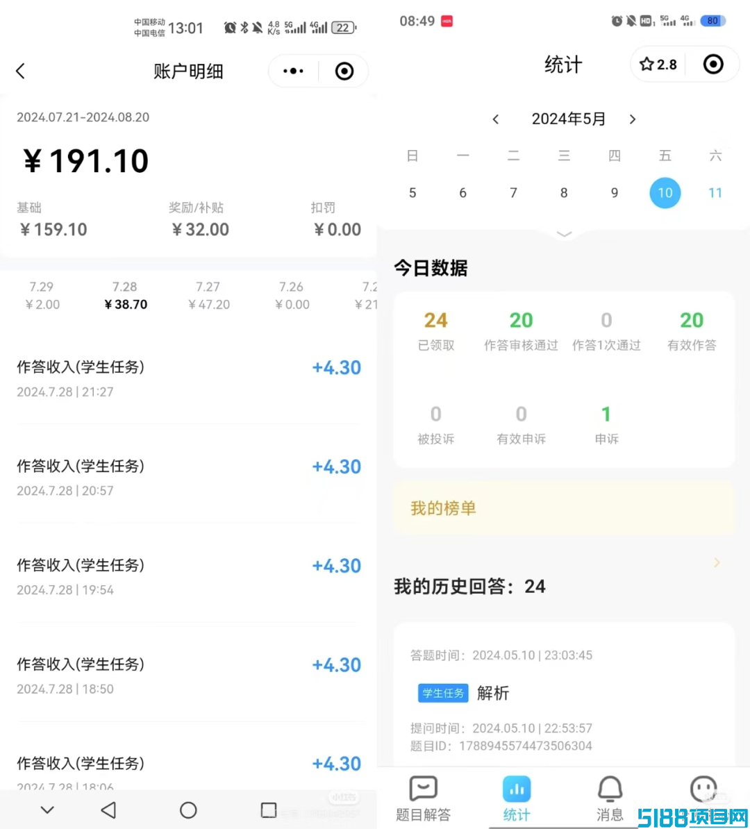 这个很多人可能听过。平台任务比较多,主要是中小学各科作业,数学、英语、语文这些都有,按题量或者篇数来算报酬,每单在5元以上,到账速度也很快,适合长期做。