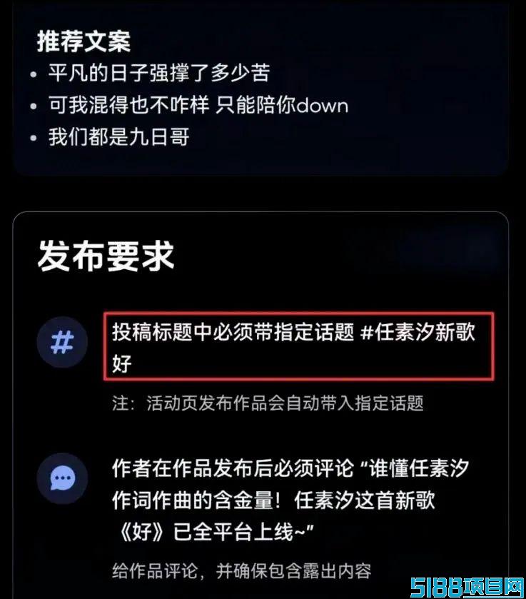 开始做视频之前,记得先看清楚发布要求和推荐文案,并且发视频的时候,还要带上要求带的话题。