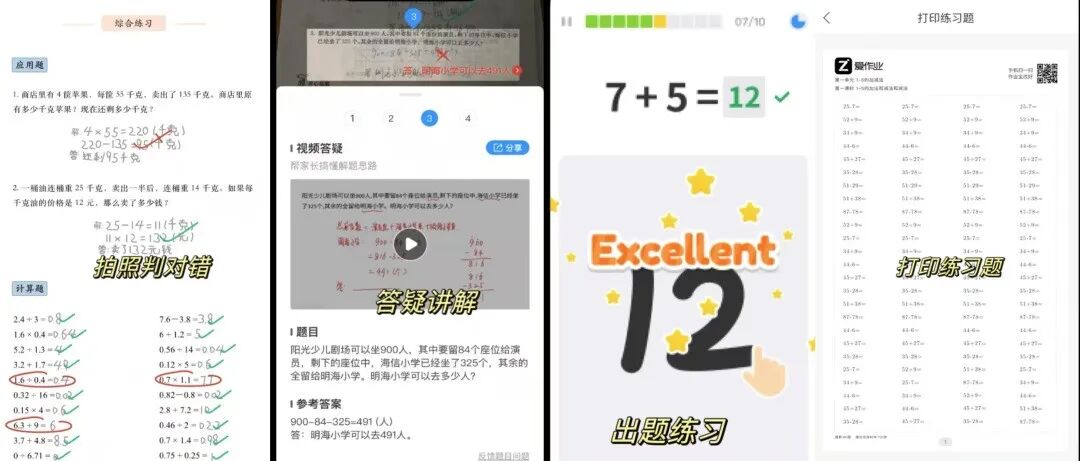 这个跟其他几个有点不一样。它是用拍照识别的方式批改小学数学作业,你只要拍张照片上传,系统会自动识别答案对错,你再核对一下就行,特别适合想省事儿的朋友。