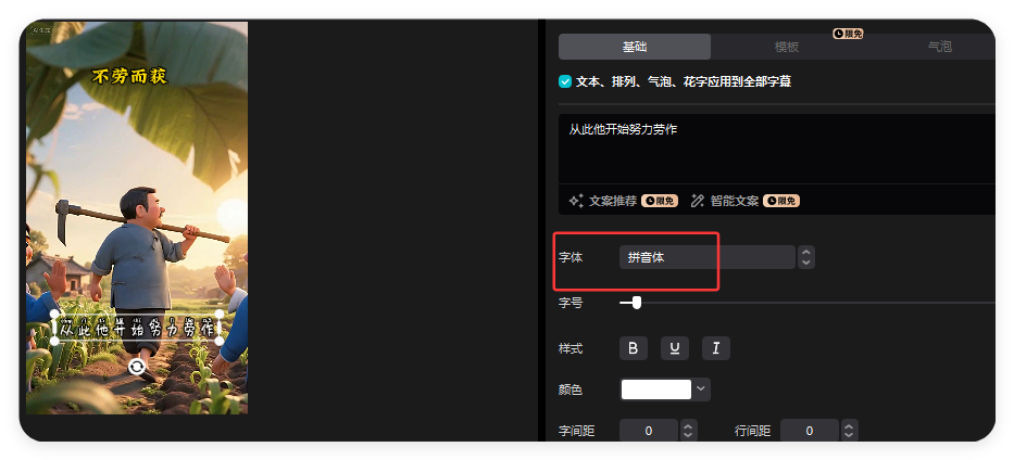 3.识别字幕,选择字体“拼音体”(适合儿童学习,也可以自己设计)