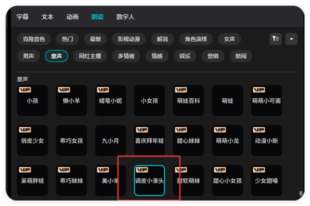 1.新建文本,输入智能体中生成的旁白文案,文本朗读选择一个适合的童声(我选择的是“调皮小滑头”)
