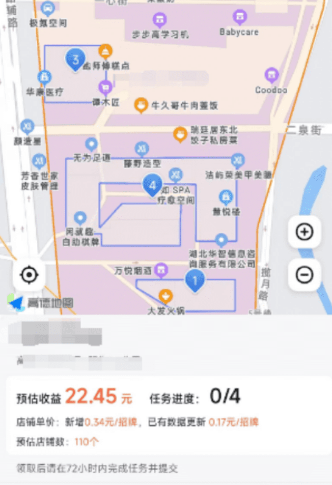项目原理是这样的:高德为了完善地图细节,比如公交站迁移、新店开业、充电桩是否通电等,都需要有人实地确认。平台会把这些任务拆分成小任务,谁路过就由谁拍摄,审核通过后就能获得报酬。