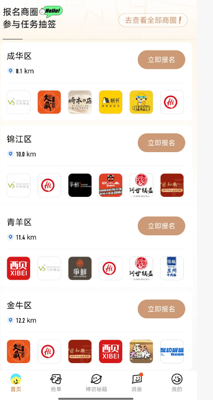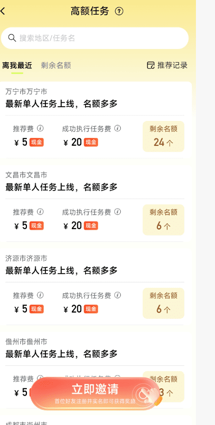 第三步:进入首页就能看到你所在区域的任务,也可以选其他地区的