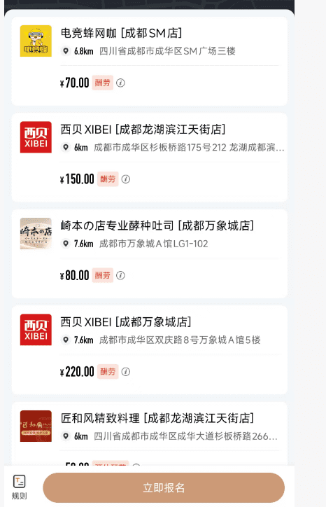 比如你接了个西贝的任务,奖金150元。去做任务肯定要消费,假如餐费100元,那就能赚50元差价。