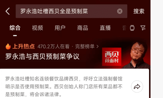 最近有个热点事件特别火——“罗永浩和西贝预制菜之争”,估计不少小伙伴都刷到了吧?事情起因是西贝被质疑使用预制菜,老罗直接悬赏10万元征集线索。