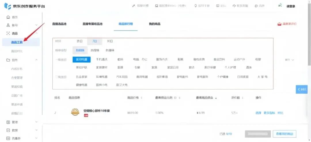 之后实名认证,实名认证完成带货权限就能轻松开通,没有粉丝要求,0粉丝就可以。第三步:选择商品点击“选品”—“选品工具”看一下佣金比例,选出自己想要的佣金比例,之后添加到我的商品,就ok