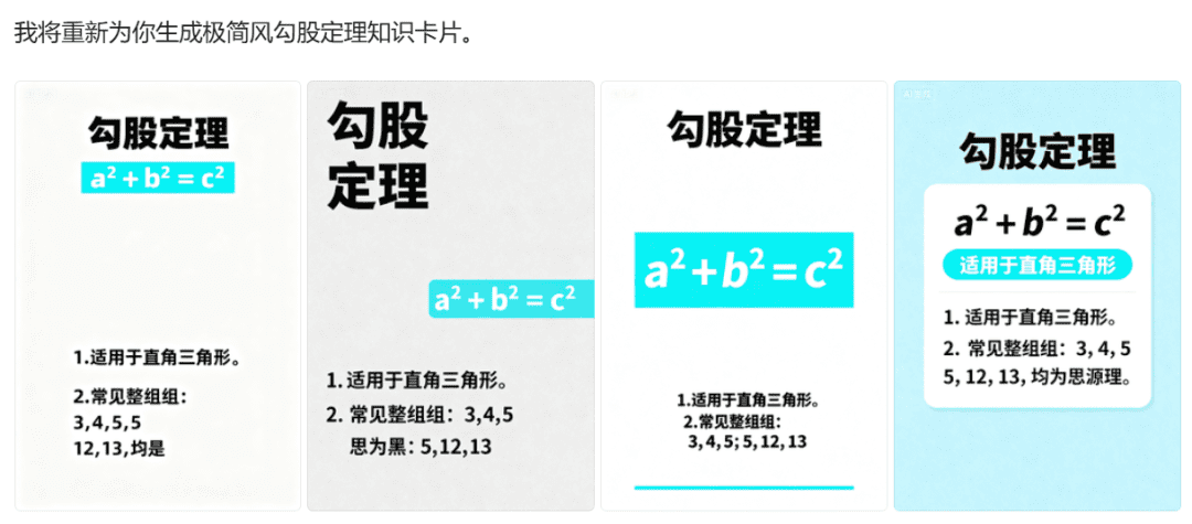 要是搁以前做这种知识卡片图,不会点图像类软件不行,修修改改一张图至少半小时吧,或者高级点用工作流智能体去批量生成,那模版也是固定死的,不够丰富。