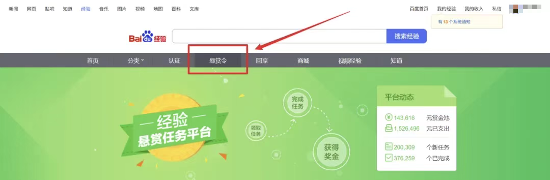 进去后用你的百度账号登录,没有的马上注册一个,然后点击悬赏令。