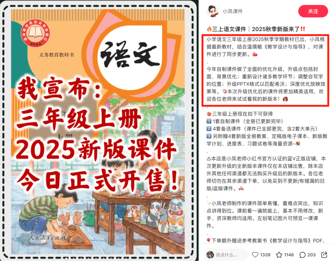 小凤的课件解决的就是这个痛点。她的课件都是最新教材同步更新的,包含完整的教学设计、朗读音频、笔顺动画,一套只要9.8元。