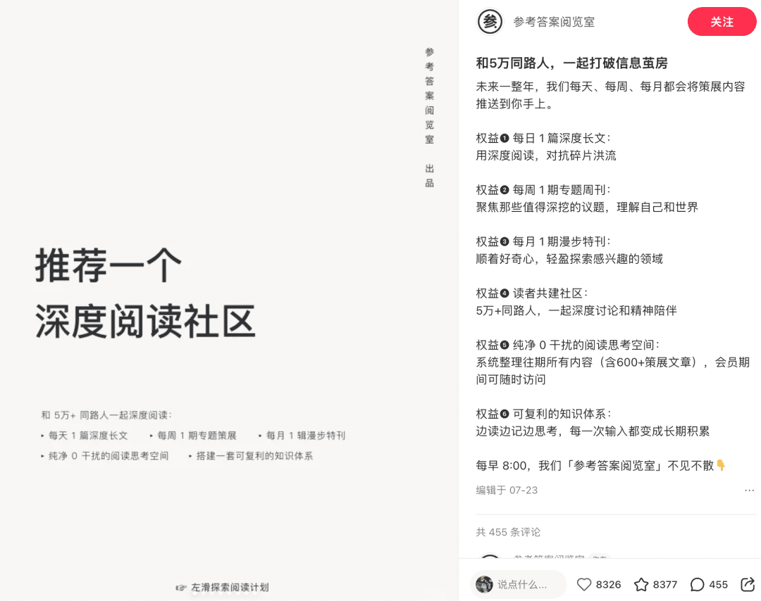 这种价值观,吸引的是那些「厌倦了碎片化信息,想要深度思考」的人。