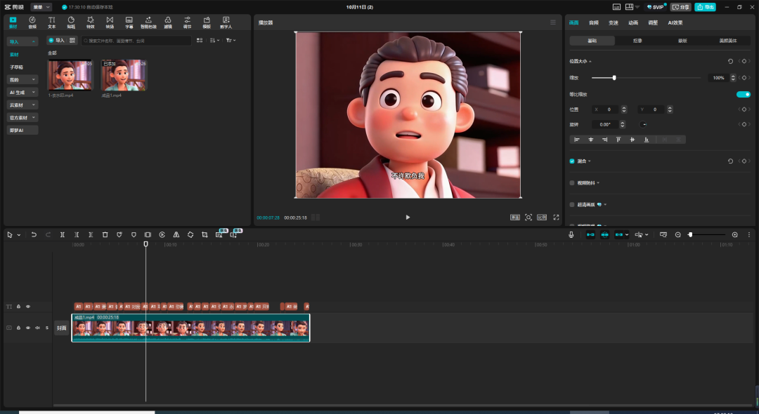 从原视频可以看出,我选择的片段里面是有大量的人物对话的,所以我们要使用即梦AI的数字人功能生成视频,使动画人物的口型与台词可以匹配上。
