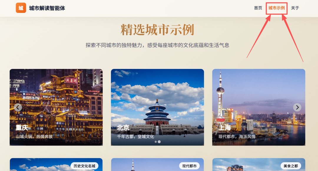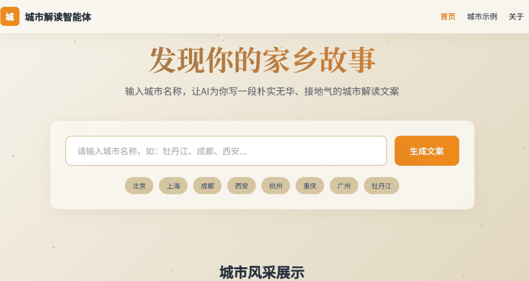 直接输入你想生成的城市名字即可比如西安智能体就会直接帮我们生成有关 西安 这做城市的解读文案