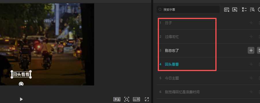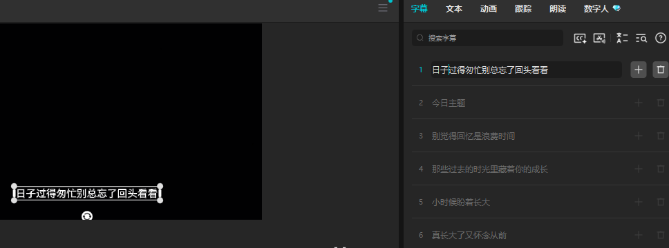 字幕识别好以后,随便选中一条字幕,然后在页面右侧位置,点击字幕选项(点击图片可以放大查看)