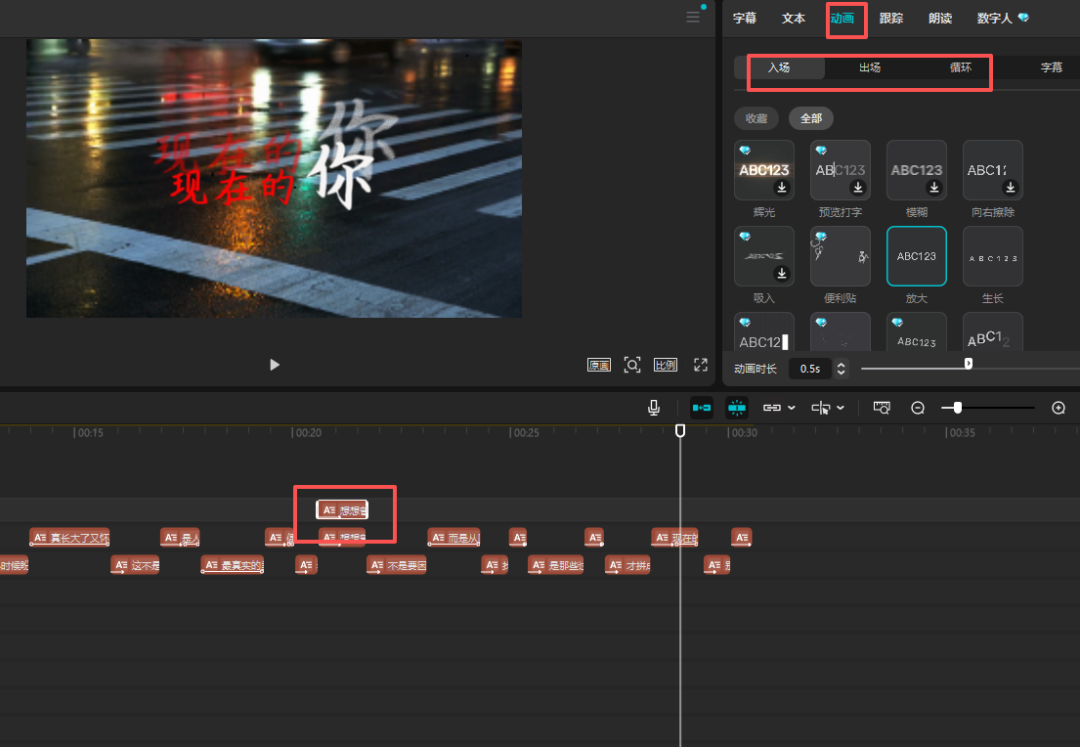 主要是这两个动画用的比较多,剩下的就是根据你自己的喜好,给每句话都添加上自己喜欢的入场出场动画就行
