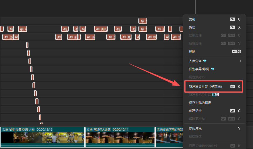 太密集了,不好做效果所以,我们隔一个字幕选一个字幕,按住键盘上的 ctrl 键 ,位于键盘的左下角(点击图片可以放大查看)
