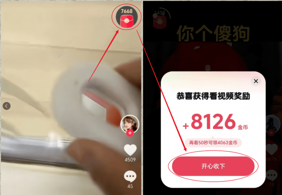 整个流程其实很简单,和你平时使用抖音没什么不同,唯一的区别在于,刷抖音没有金币,而在抖音极速版上你可以赚取金币。