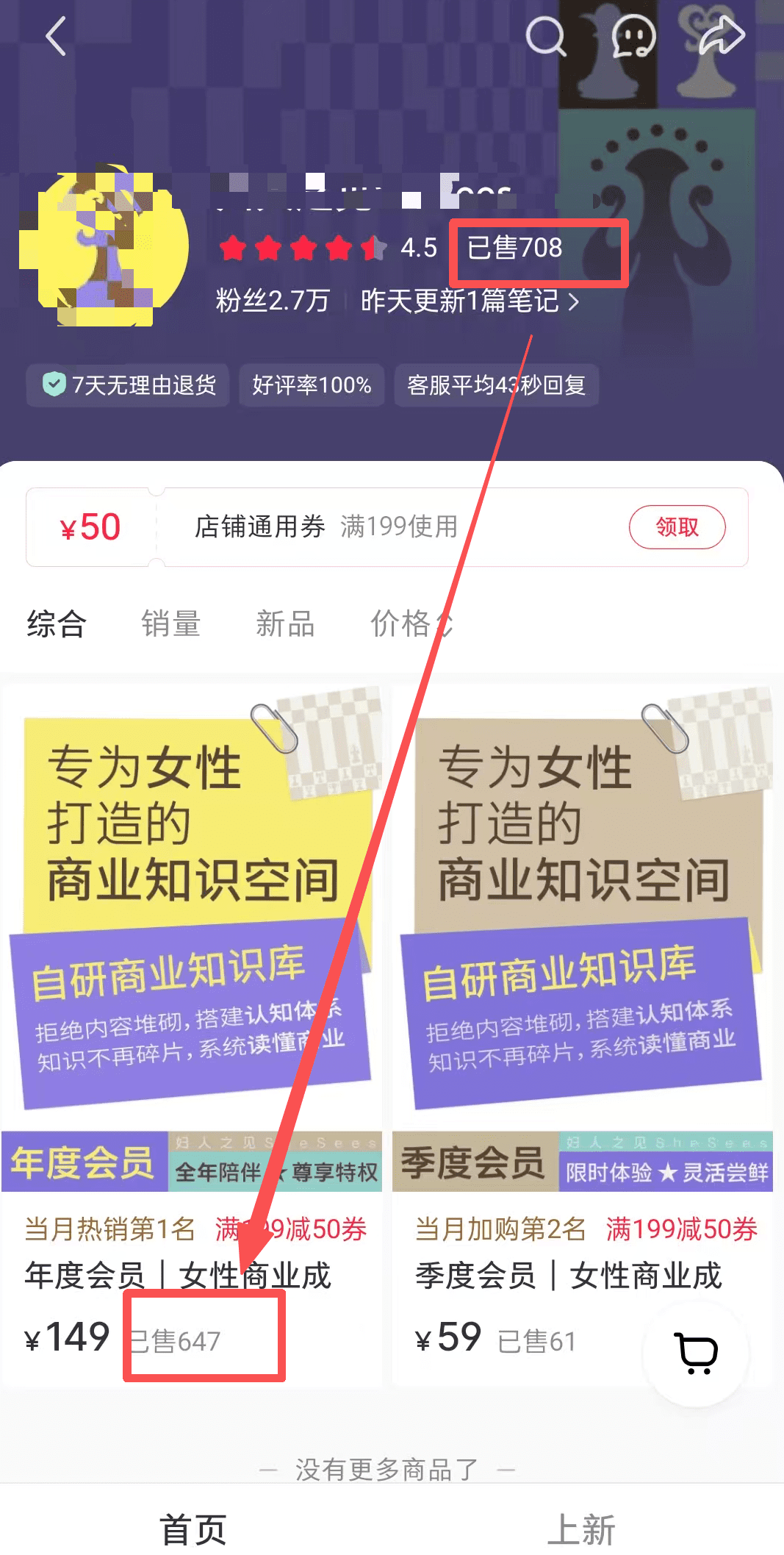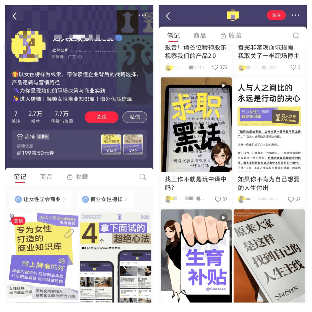 这个账号主要以女性为视角,分享一些职场和商业实践的相关知识,看了下他的笔记都是摘抄别人的文章,来看下店铺销量。