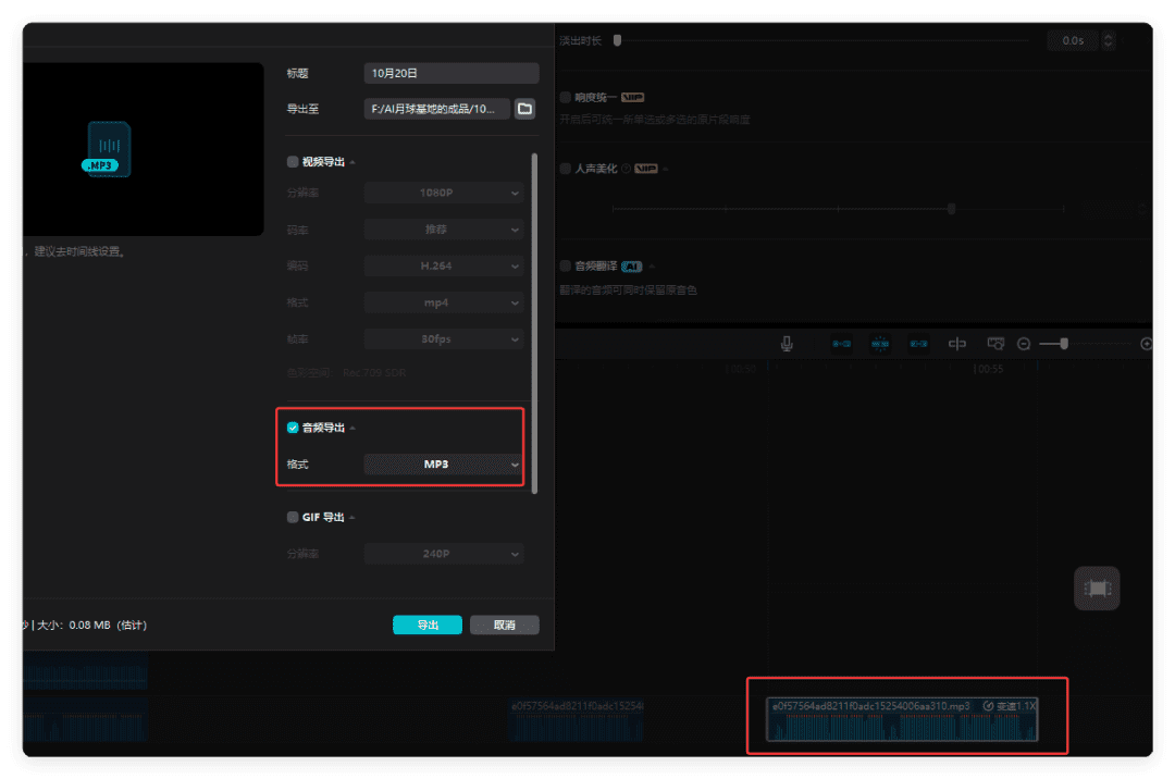 5.导出MP3格式