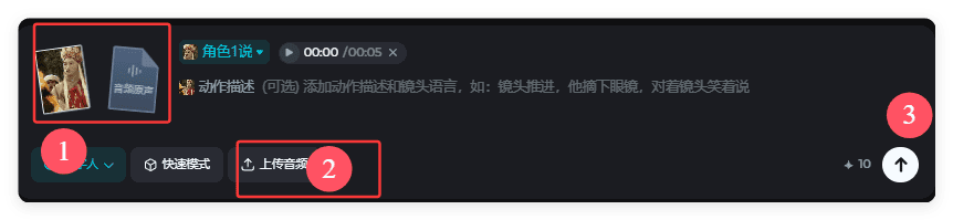 6.打开即梦:https://jimeng.jianying.com/数字人,上传导出的静帧画面,和截图的音频频段