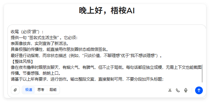 1.打开豆包:https://www.doubao.com/chat/2.对话框输入提示词,完整提示词已更新到AI工具箱,这个提示词deepseek,豆包,kimi等文本AI工具都适用,看个人习惯。