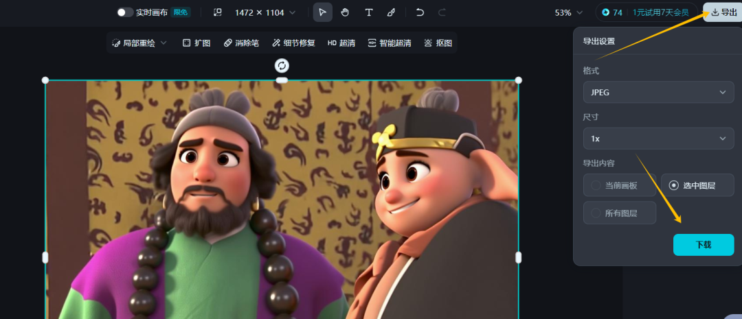 保存下来之后,截图视频里的关键画面,我们后续要用AI来生成3D动画版,