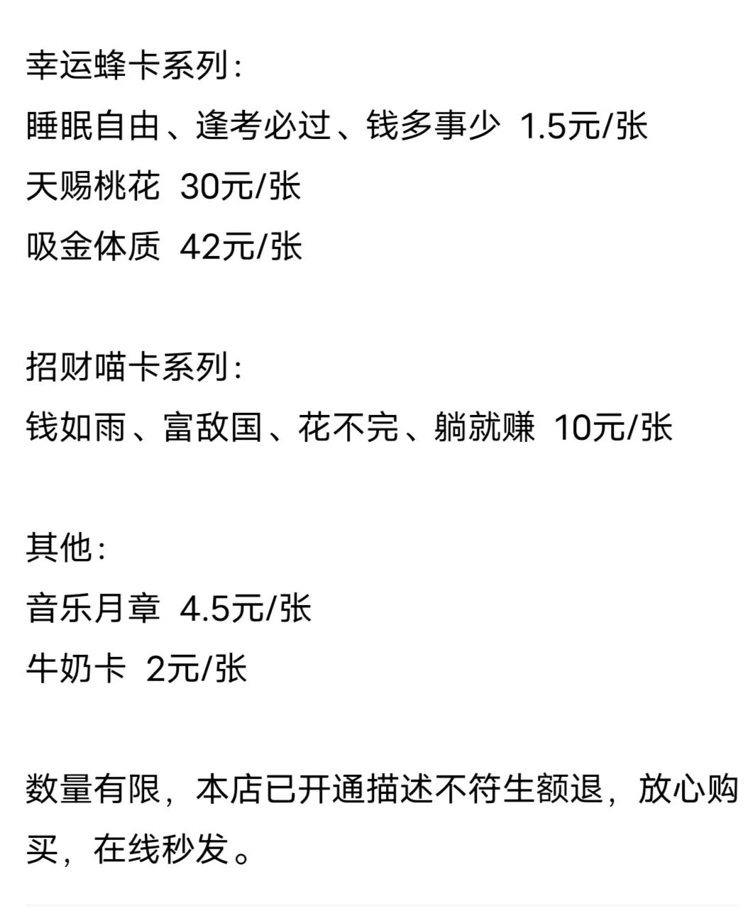 “睡眠自由”“逢考必过” 这类常见卡,