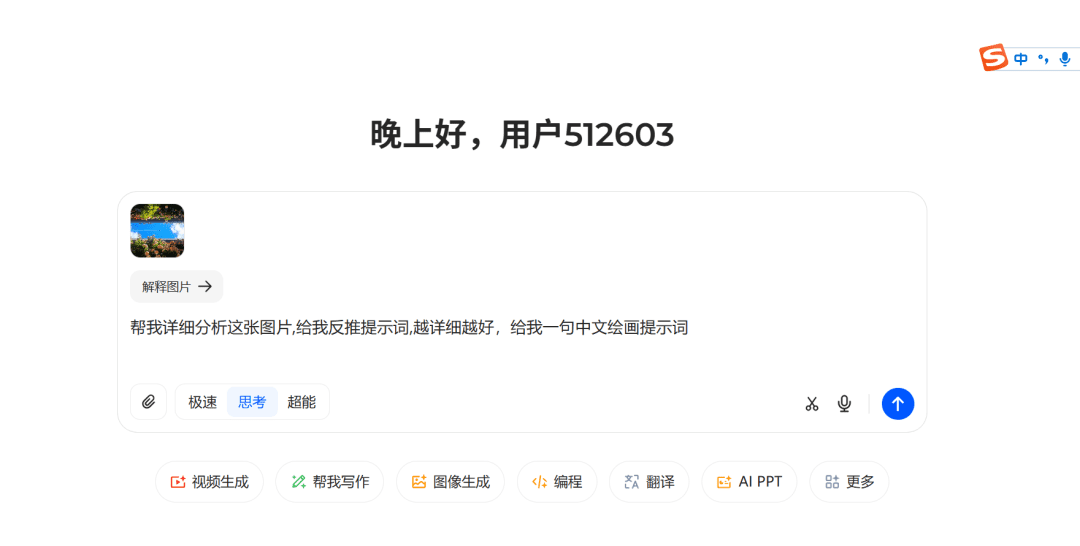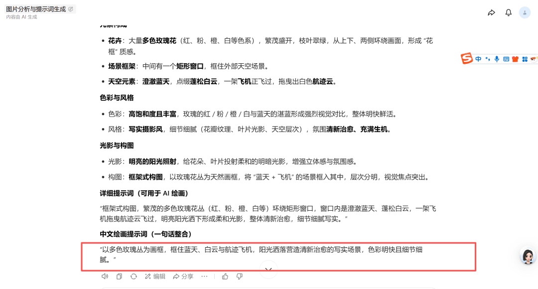把对标图片发送给豆包,输入提示词:帮我详细分析这张图片,给我反推提示词,越详细越好