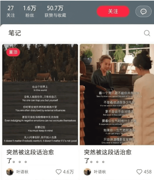 小红薯用户尤其偏爱温柔治愈的内容,