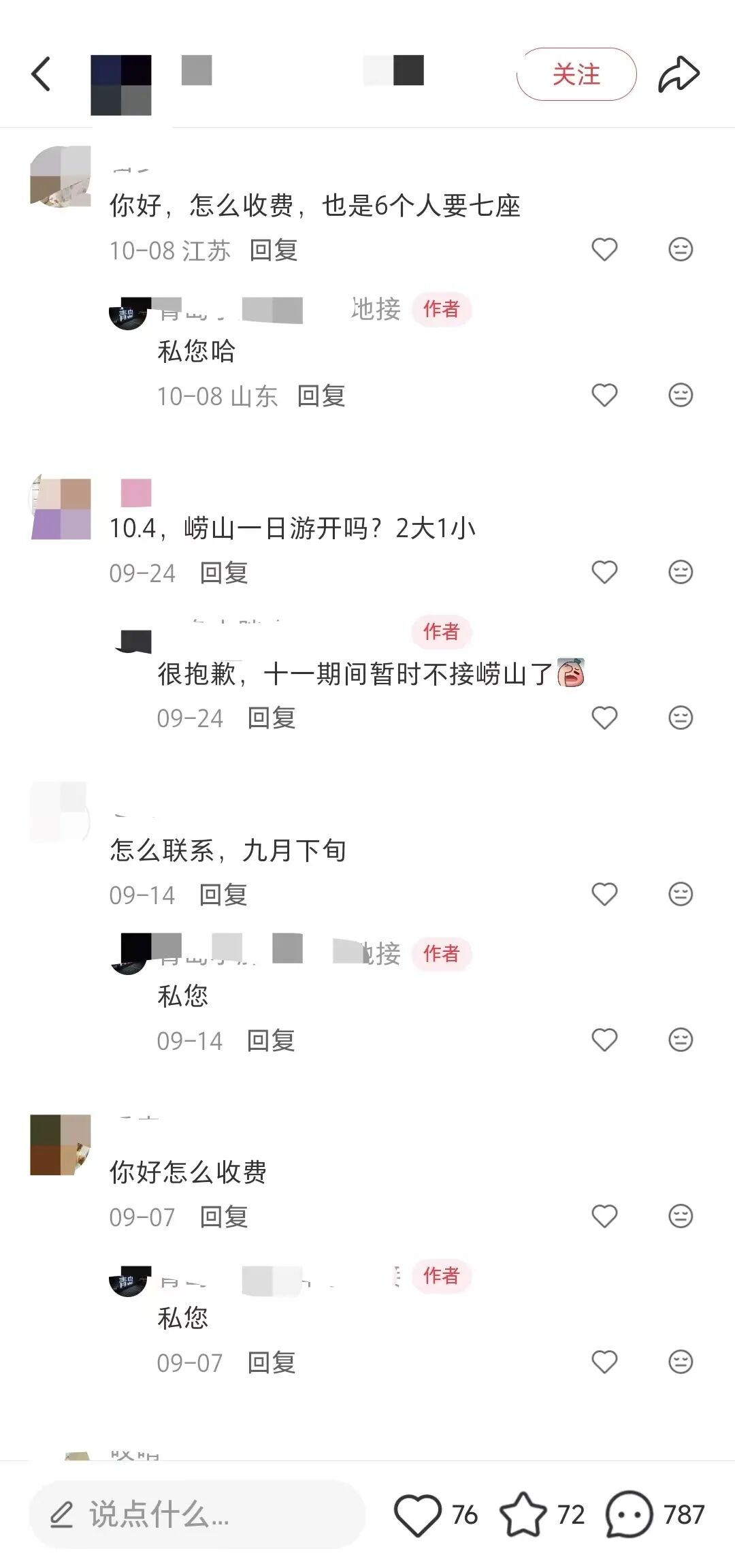 我们看下面这个笔记也是,是一个在青岛做旅游包车的账号,也是拿这种类型的笔记做一个置顶笔记。