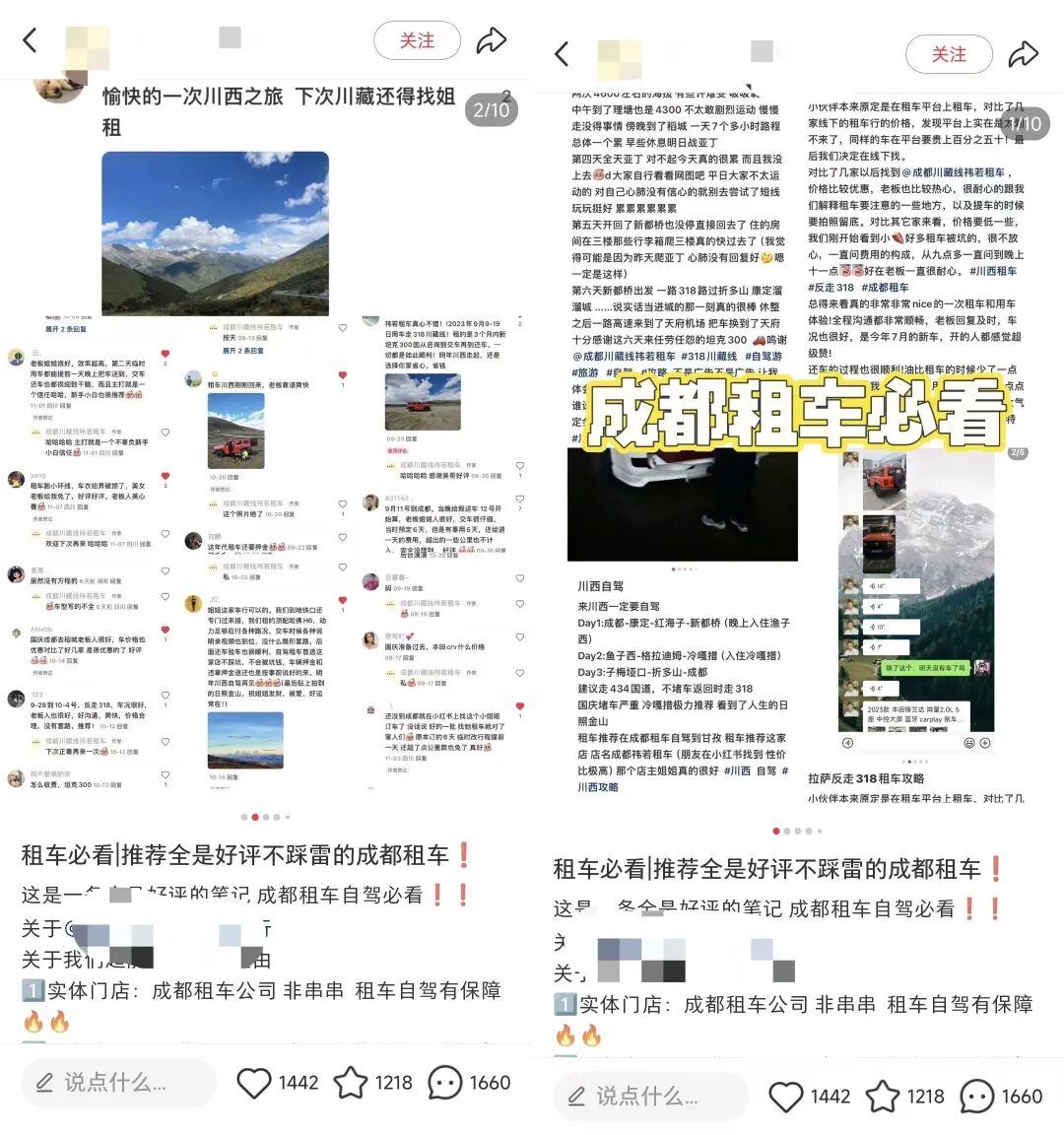 我们看下面这个笔记是一个做川西旅拍小团的,标题一个零差评职业川西领队是怎么样的,内页配的是旅拍的图片。