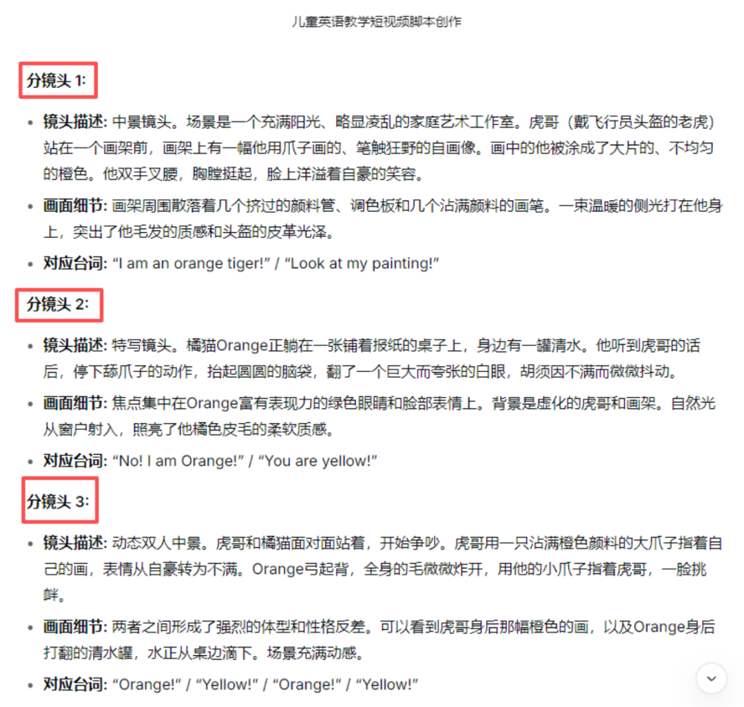 得到分镜头脚本: