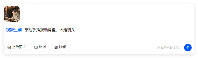 1.选中图片,豆包右上角生成视频,输入提示词(人物+动作+运镜)每个分镜都生成视频 (例如)