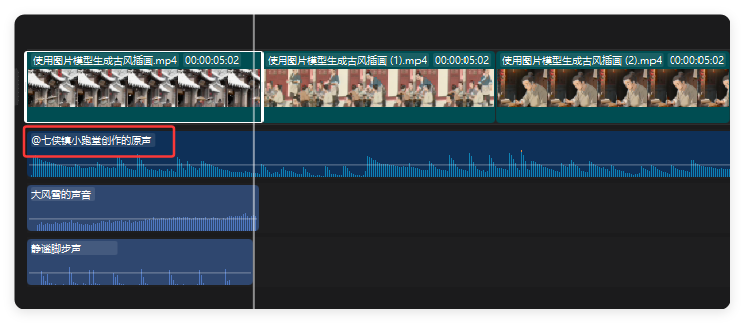 1.把生成的视频片段导入剪映,脚本里都给了适合的音效,添加音效更有沉浸感