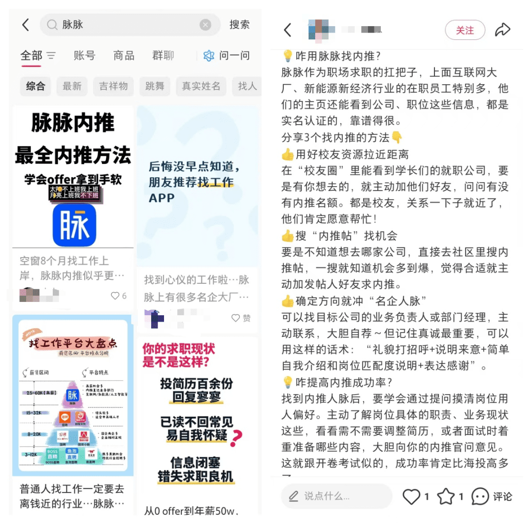 推广方法也非常简单,小红书搜索脉脉 ,就可以找到同行了,看别人怎么发的,去模仿发布就可以了。