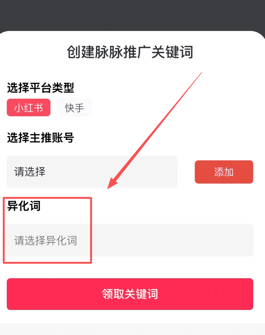 注意一下,异化词这里要起一个独一无二的关键词,因为小红书是不允许放链接的,起一个自己的关键词,让用户去搜。只要用户下载了脉脉,并且用我们的关键词去搜了,就算一个有效拉新。