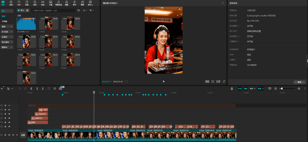 1.按顺序导入所有视频与图片素材,匹配音频轨道。