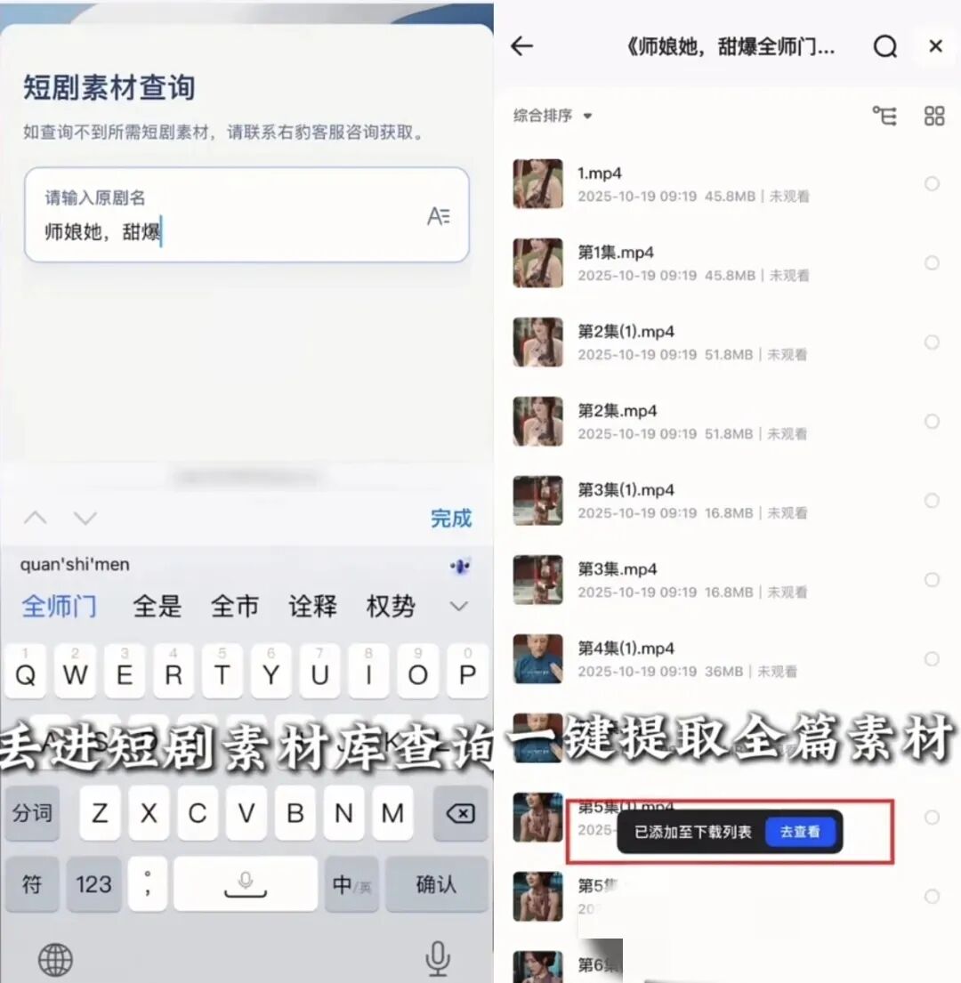 拿素材,剧名接下来丢进短剧素材库查询,一键提取全篇素材