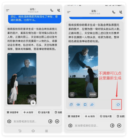 2.打开豆包APP—AI创作—开始创作—AI生图—上传照片—输入提示词