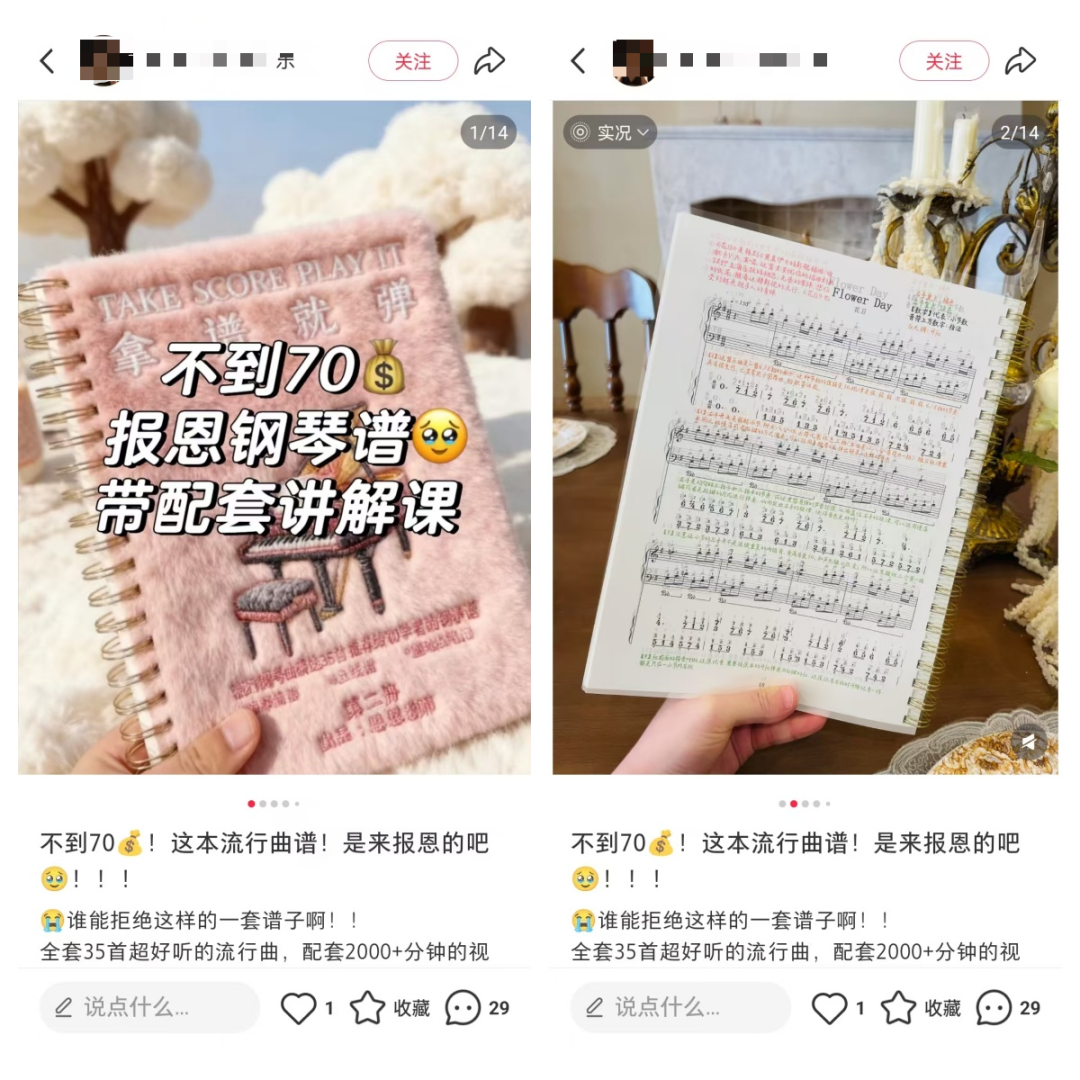 我们最近这一个月一直在分享小红书虚拟赛道,今天继续分享一个玩法,就是小红书卖钢琴谱,小红书搜关键词,可以看到销量都很高。