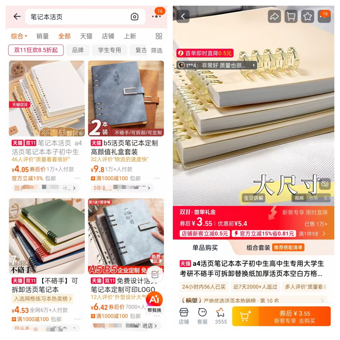 封面有了以后还不行,我们要有一个活页的本子,如果你没有,可以去文具店或者某宝买一个,关键词笔记本活页,见下图: