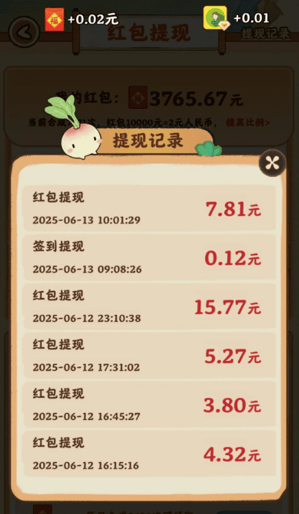 游戏里,每卖出一份小吃就能拿到红包奖励.而且随着摊位升级,提现额度和奖励比例也会不断上涨,销量越高,收益越可观!
