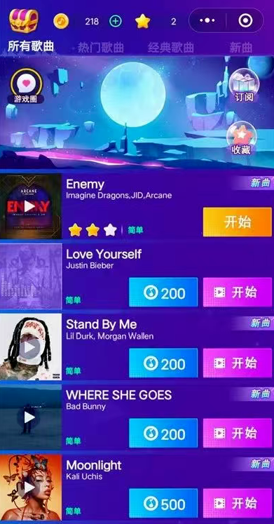 游戏全程播放当下热门歌曲,玩家只需跟着节奏戳屏幕。