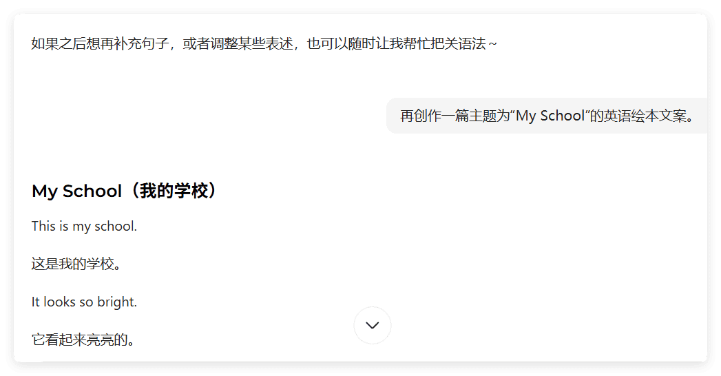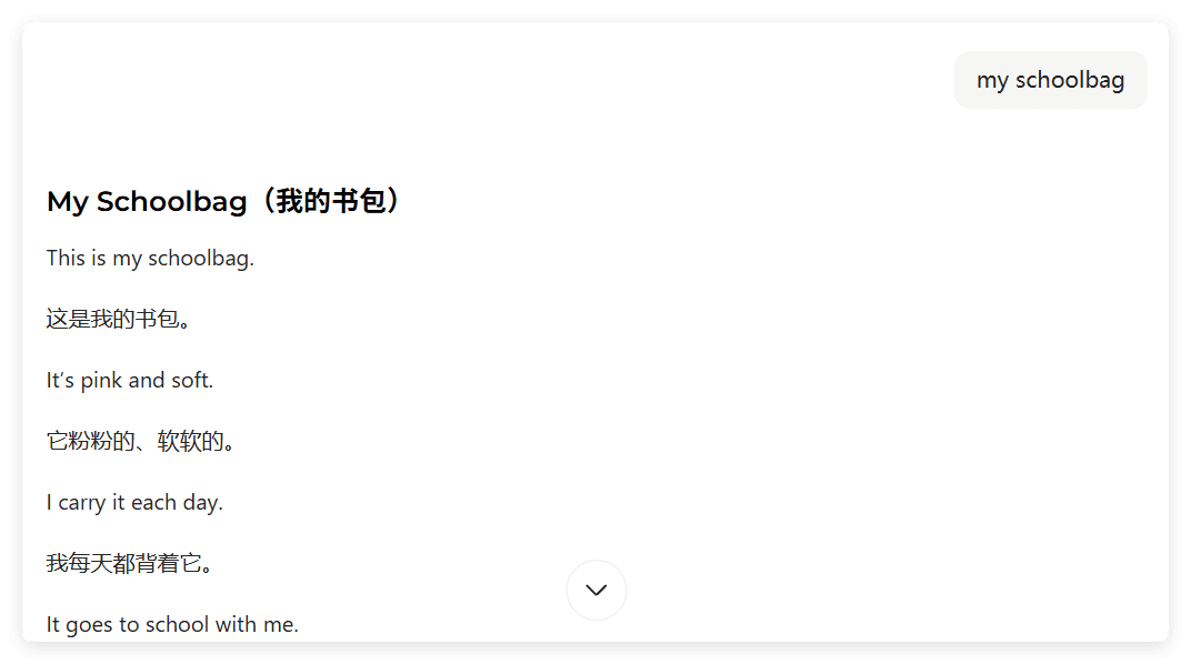 请扮演资深儿童绘本作者,为 3-7 岁儿童创作一篇主题为 “[此处填写具体主题,如 My Schoolbag/My Toy Car/My Pet Dog]” 的英语绘本文案,并附上自然流畅的中文翻译。创作需严格遵循以下要求: